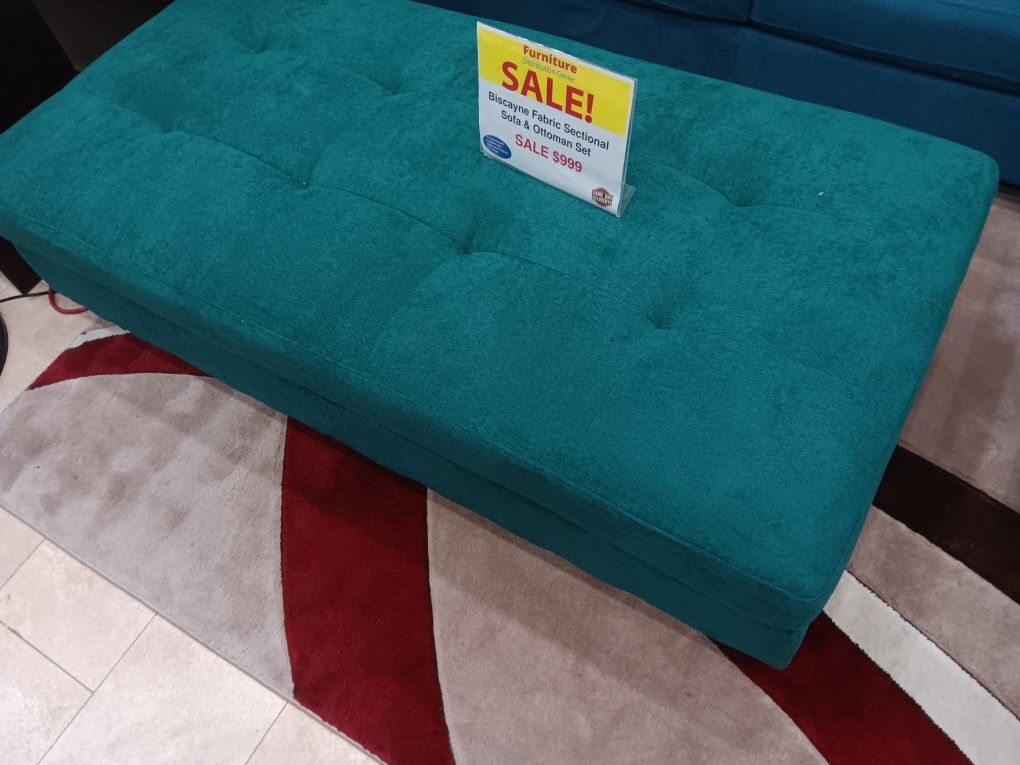 *Summer Sale Event*---Biscayne Vibrant Green Fabric Sectional Sofa W/Ottoman---Now $899---Delivery And Easy Financing Available