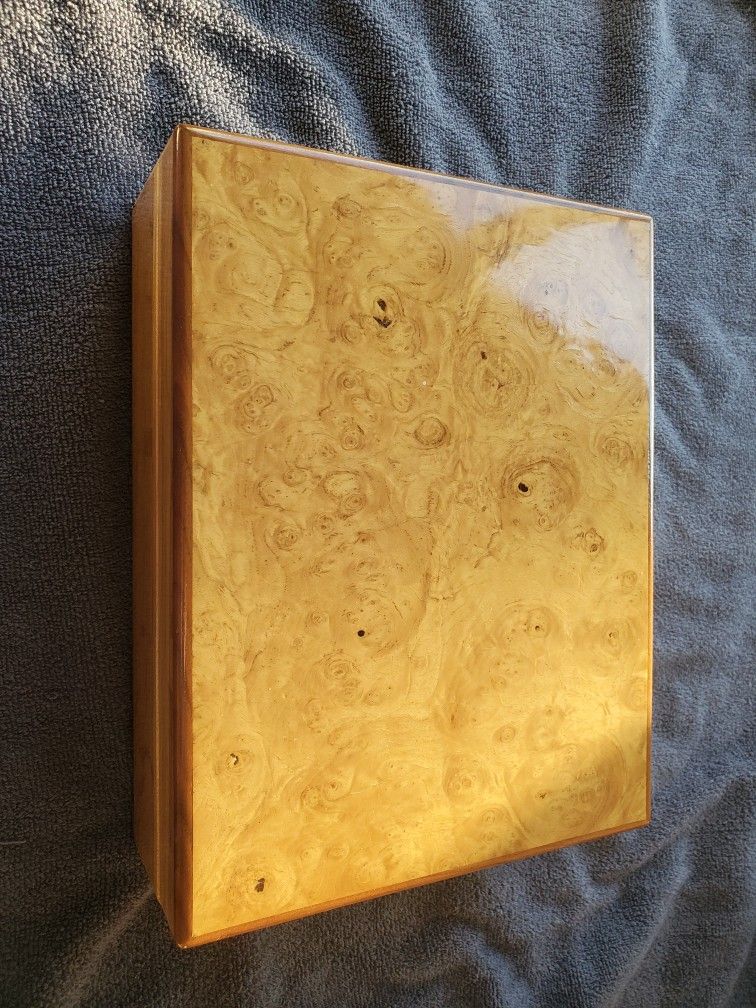 Custom handcrafted speciatly wood jewelry box. Top is white oak burl and the sides are white oak with mahogany, maple and spalted cherry trim. The inside has a mahogany lid and bottom with figured maple sides. The insert sliding tray has a mahogany bottom with figured maple sides as well. Dimensions are 13"x10"x5". Pick up in lynnwood.