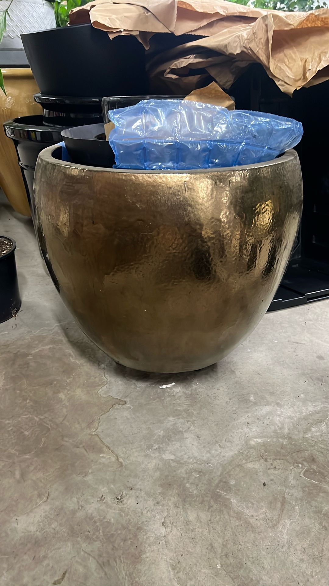 Large bronze ceramic pot. 19” tall x 22” wide. $40