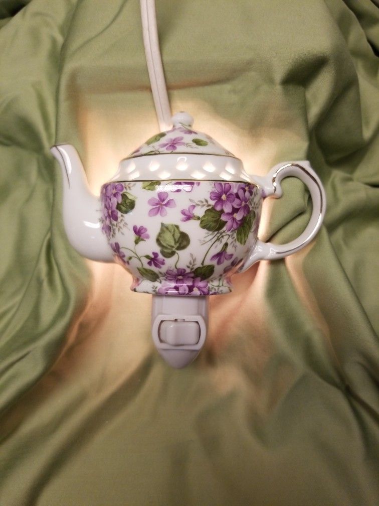 A charming teapot nightlight painted with violets $10 OBO. Cash only please