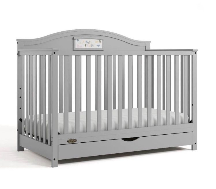 5-in-1 Convertible Baby Crib with Drawer & Reversible Headboard β Pebble Gray (Brand New) πΆπ€ The perfect blend of style, safety, and versatility for your growing baby! This beautiful 5-in-1 convertible crib adapts as your child grows - from newborn to big kid! Features: β’ 5-in-1 Convertible Design: Converts from crib β toddler bed β daybed β full-size bed with headboard & optional footboard (conversion kits sold separately). β’ Built-in Full-Size Drawer: Includes a large under-crib drawer with 2 compartments and stylish metal handles for easy storage of baby essentials. β’ Customizable Headboard: Choose from 4 included artwork panels or reverse the headboard for a clean, classic look. β’ GREENGUARD Gold Certified: Tested for over 10,000 chemicals and VOCs for a safer nursery environment. β’ Safety Tested & Verified: Meets or exceeds ASTM and CPSIA standards - quality and safety you can trust. β’ Adjustable Mattress Heights: 4 mattress support levels, including a convenient newborn height option for easier access. β’ High-Quality Craftsmanship: Made from pine wood, engineered wood, and composites with smooth Euro drawer glides. β’ Mattress sold separately. Assembled Product Dimensions: (LxWxH) 54.96" x 29.65" x 42.20" Beautiful, functional, and safe β this crib grows with your baby from the very first night! Message me for details or to arrange pickup!