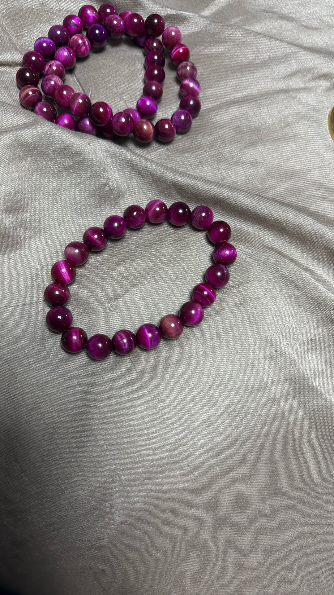 10mm Hot Pink Tigers Eye Stretchy Bracelet, Tigereye Crystal Charka Healing Anxiety Relief Balancing Protection Gemstone