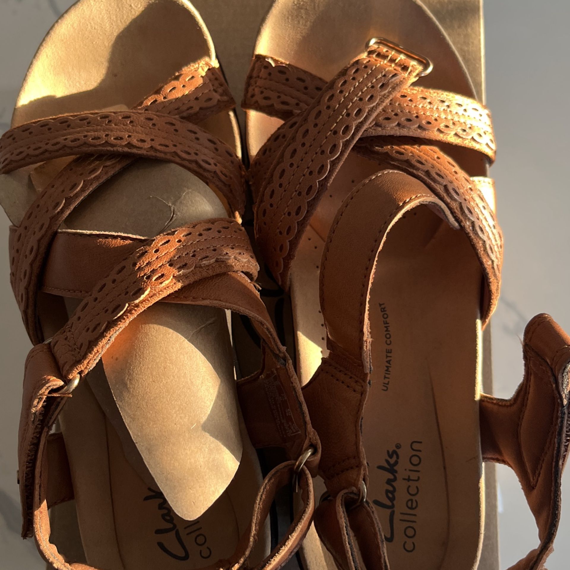 Clark’s women’s Laurieann Rene Embellished Strappy Sandals 7 1/2 Tan color