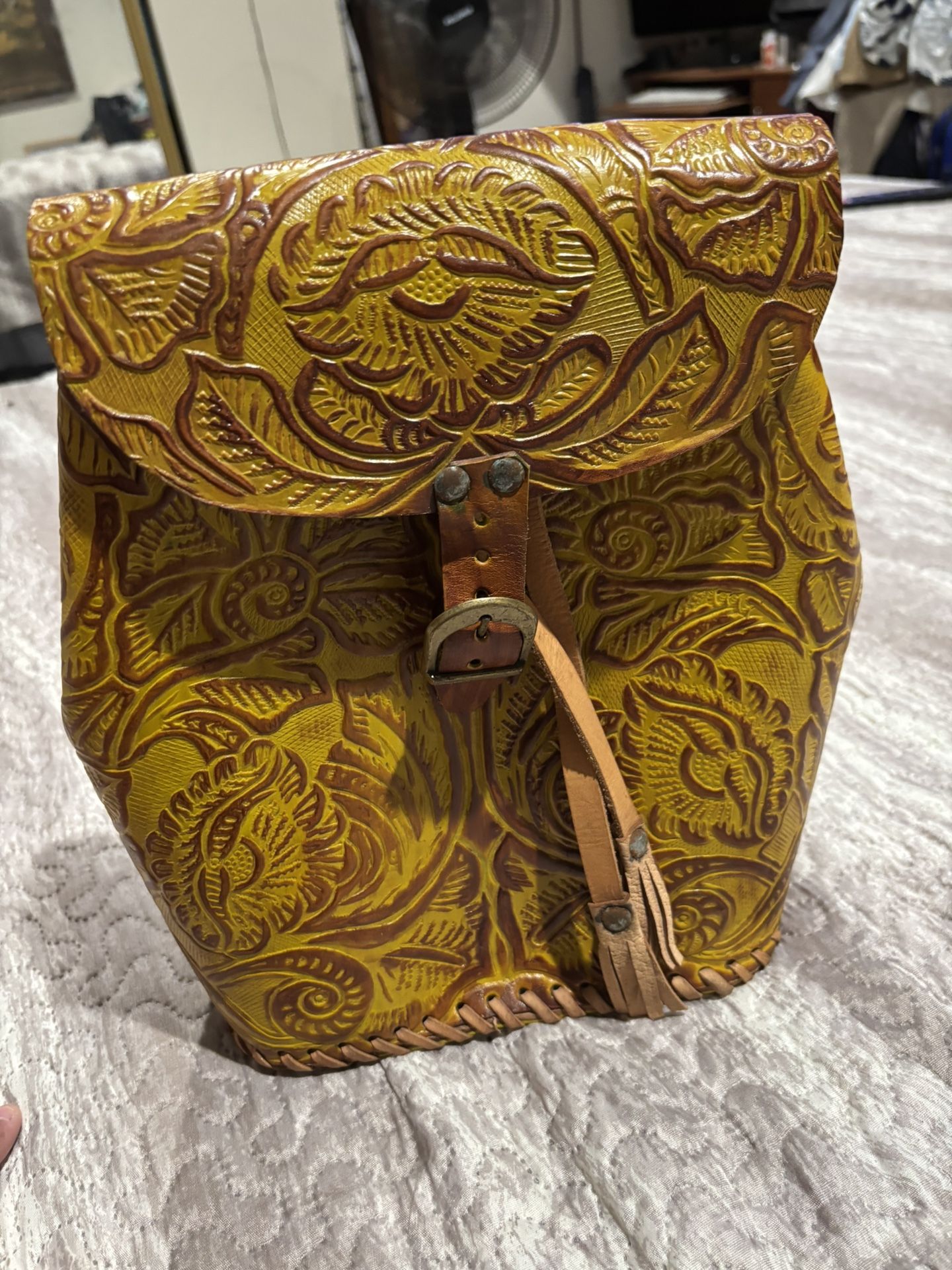 Nice Yellow Leather Backpack Makes nice Christmas Gift