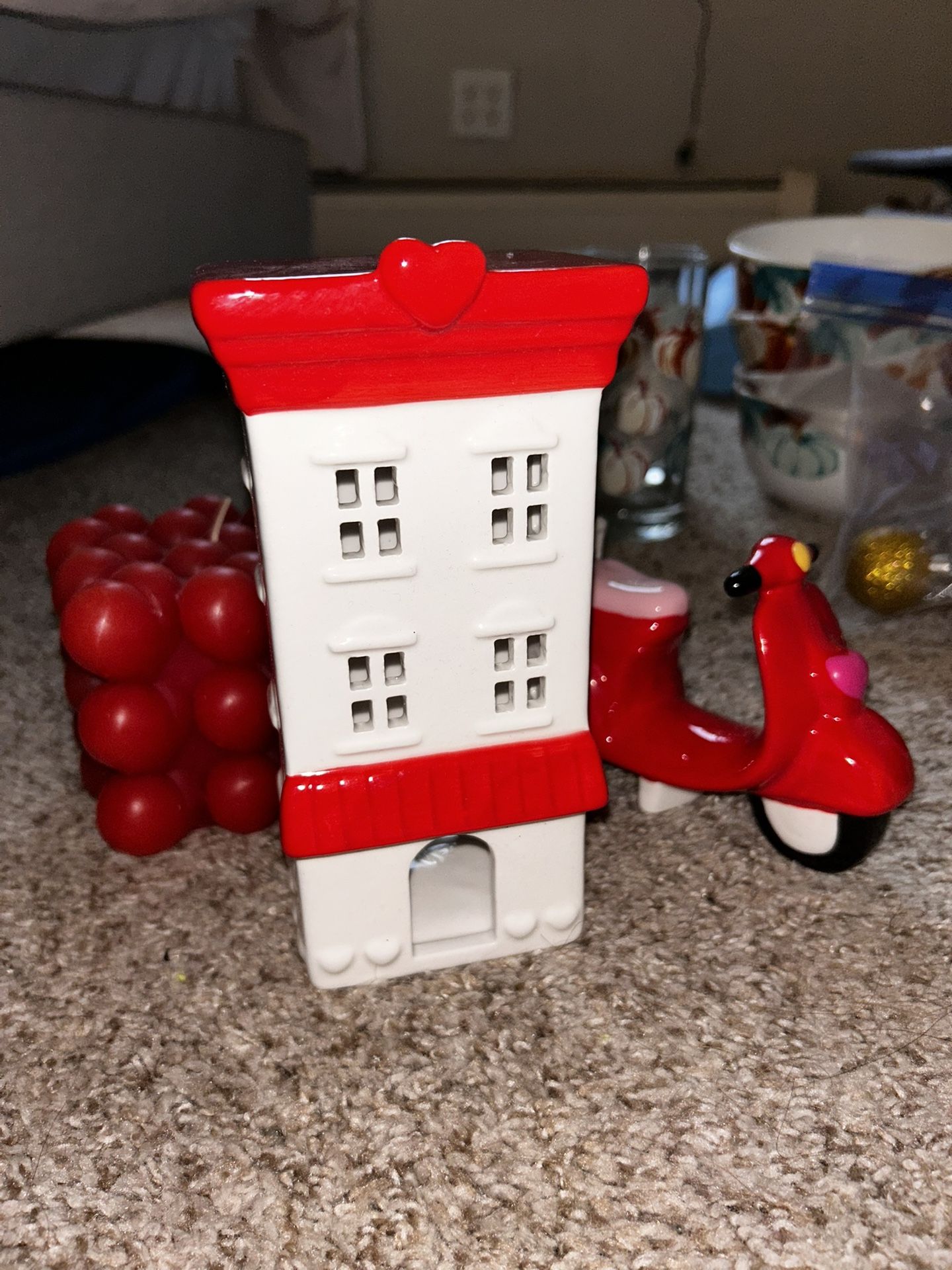 $5 each - if buying multiple we can work out a deal. House & Vespa are glass Candle is wax hearts and never used Signs are wood