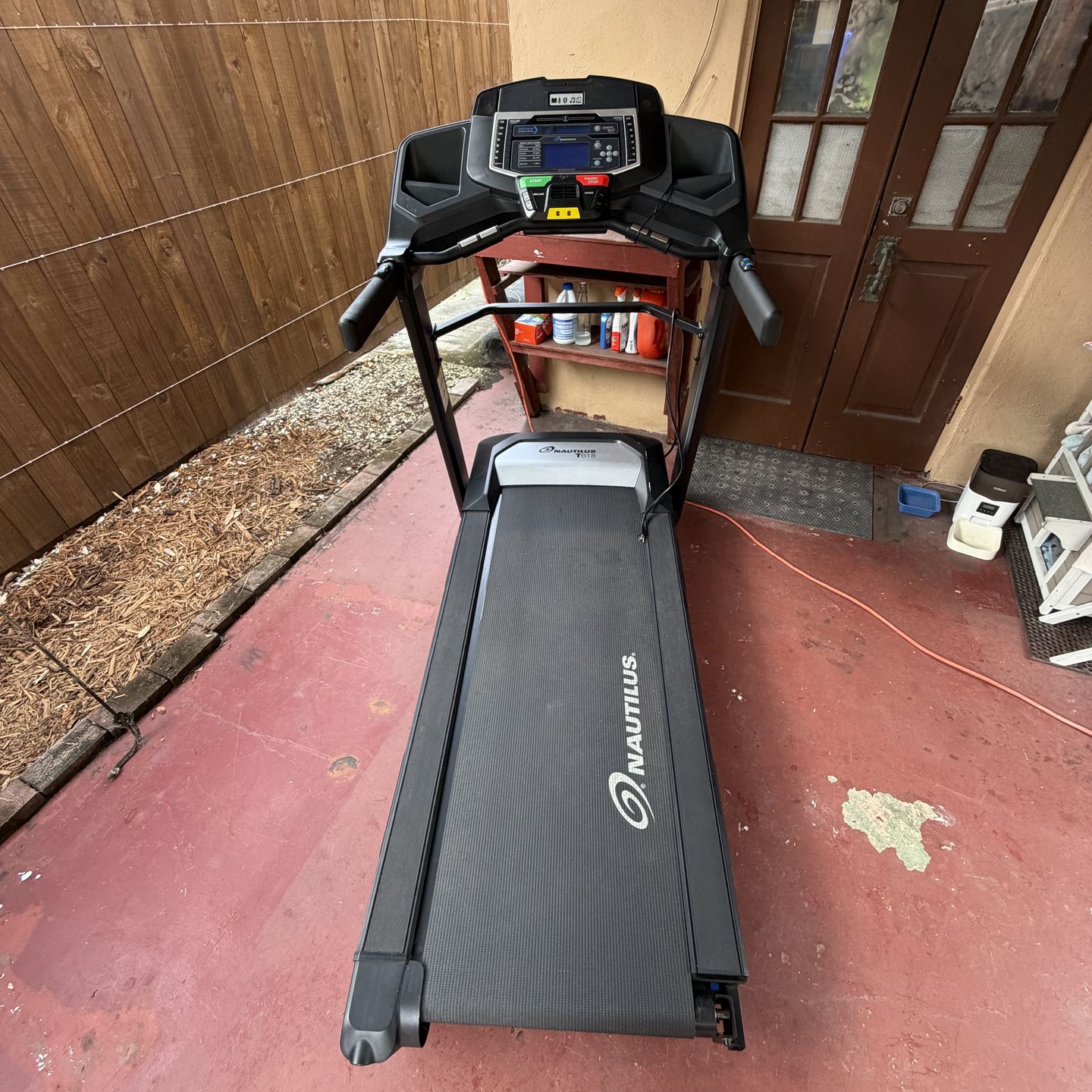 Treadmill Low miles a few battle scars from moving inside to outside of home. This is a heavy duty exercise machine meant for serious runners.