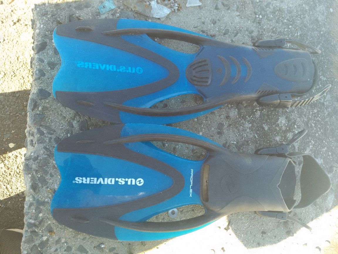 Up4sale here is a pair of us divers proflex diving and swimming fins. Great for scuba and snorkeling. They are size large-xlarge