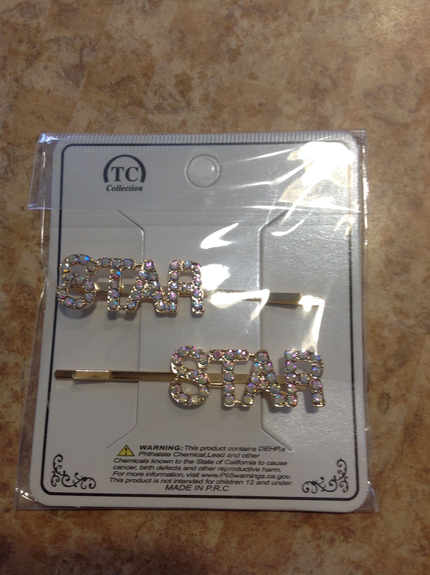 2.5" gold and silver crystal stone STAR Bobbie pins..these I have left $1.50 each CLEARANCE SALE