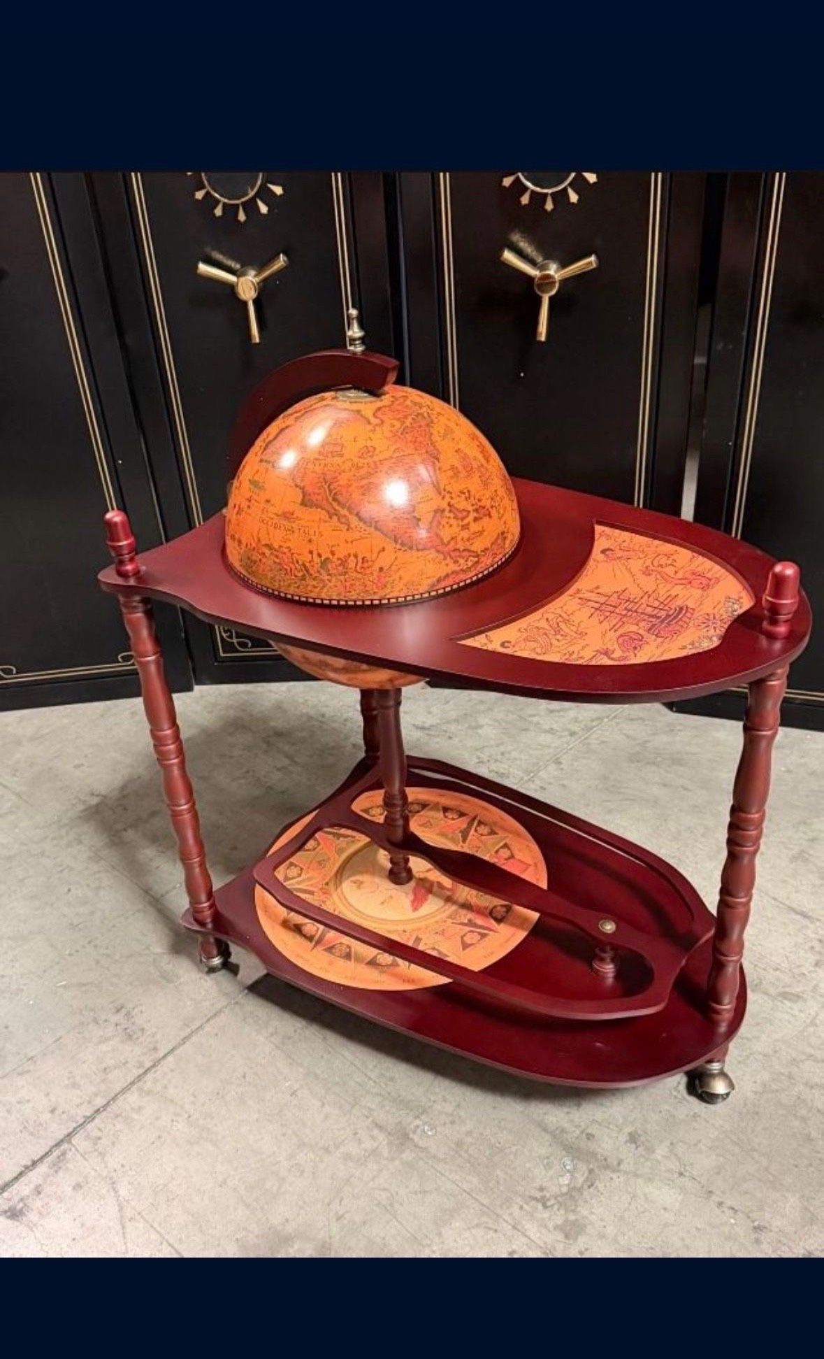 New Globe Bar, 34.5" Globe Bar Liquor Cabinet with Wheels. 27.5"X 18" X 34.5"
