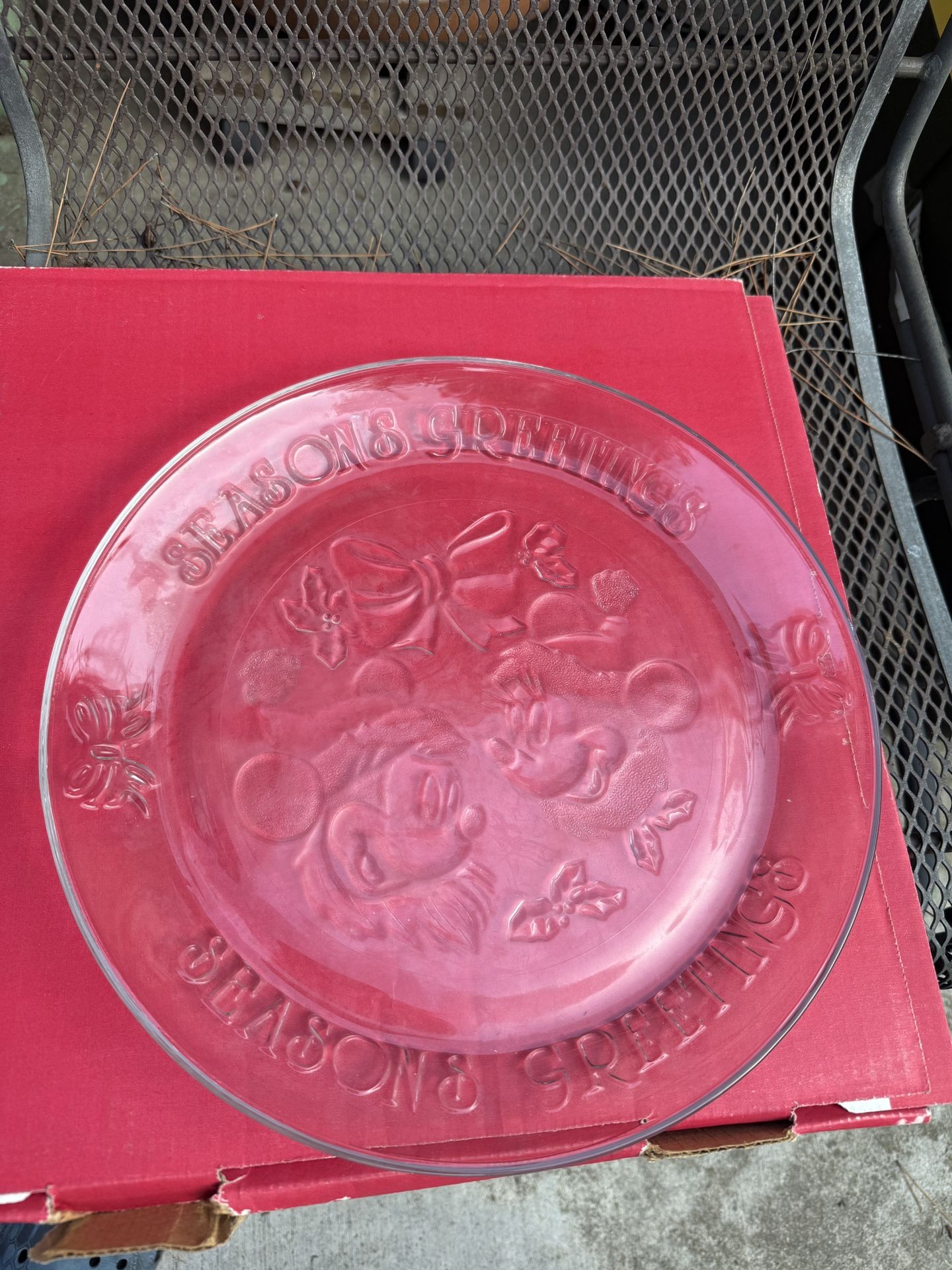 Mickey and Minnie holiday glass 12” platter Only taken out of box for photos