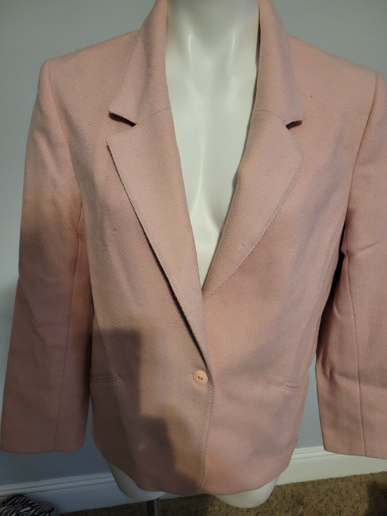 Women's size 14. Wool Blazer. One button front. Vintage style. Nice pleat down the back. 3button on each cuff. Perfect condition. Smoke free home. Will ship or meet local.
