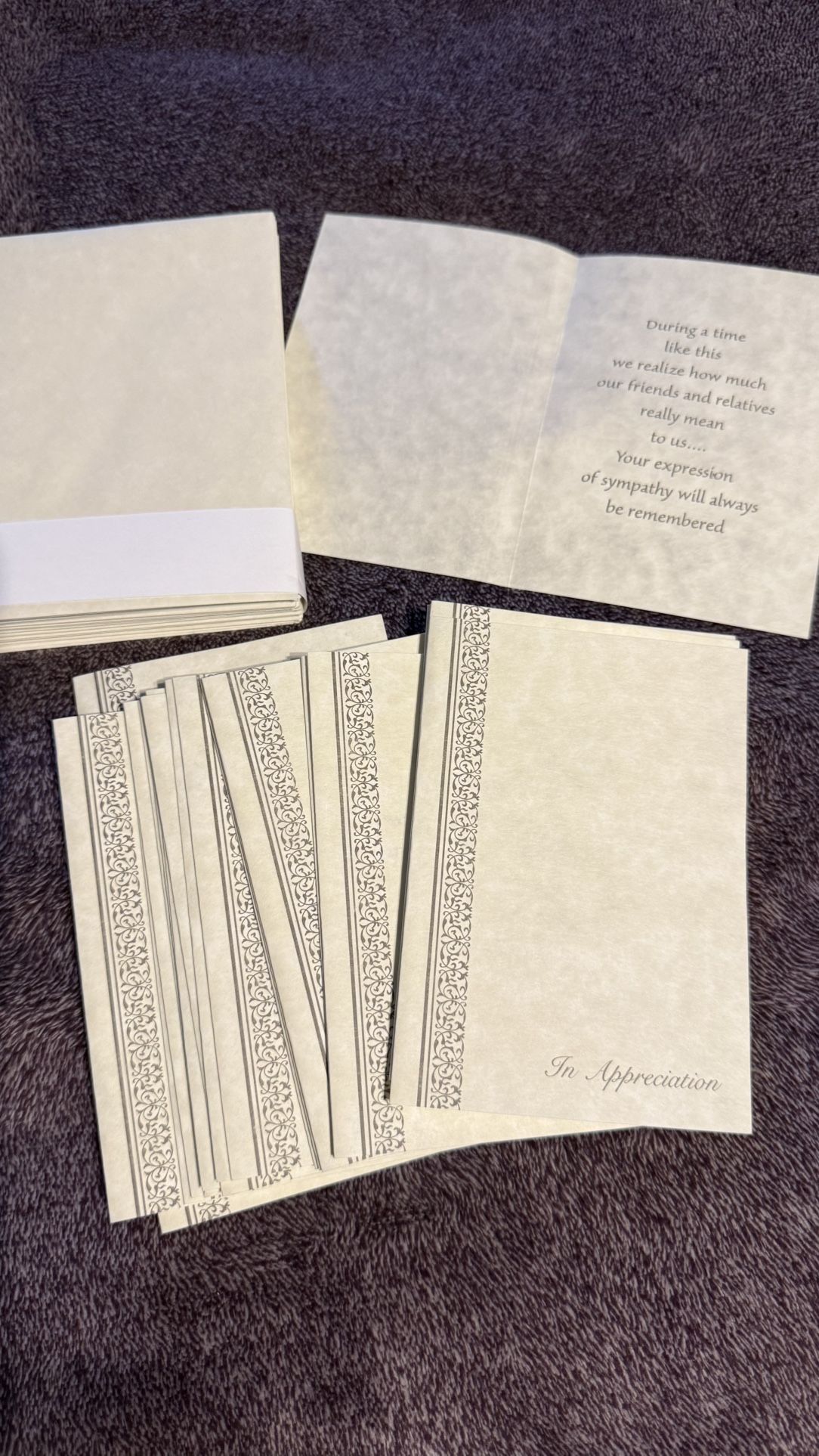 Funeral pamphlets, we bought to many. 3 pks of 25