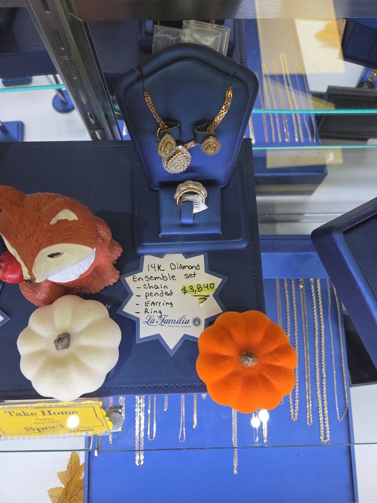 COMBO 14K DIAMOND PENDANT CHAIN RING EARRING