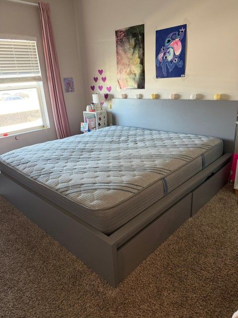 ✨ What’s Included: ✔Used IKEA Malm King Bed Frame – sleek, modern design ✔Used PressureSmart Firm King Mattress – premium comfort ✔ Original retail value: $1,000+ Condition: Very good, minor normal wear and tear Price: $450 (OBO) Location: Redlands, CA
