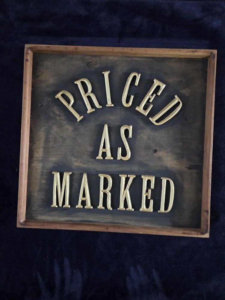 Vintage ,sturdy solid wood sign measures just shy of 21" X 21". Beautiful! Letters are raised and painted in gold/bronze.
