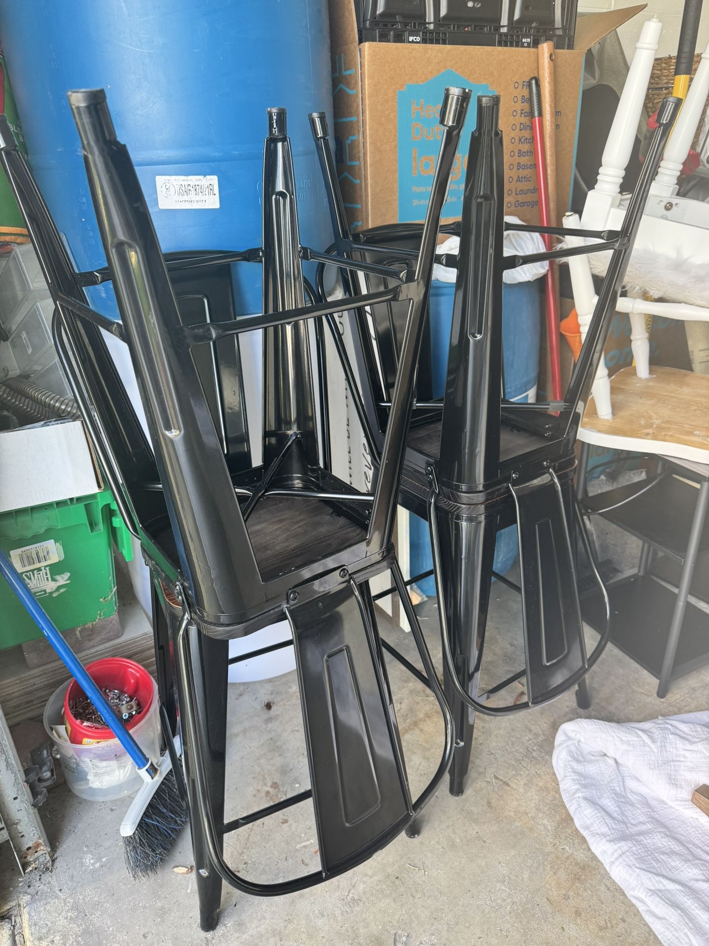 Juego de 4 sillas altas metálicas negras, estilo industrial, perfectas para barra o isla. Set of 4 black metal bar stools, industrial style, perfect for a bar or kitchen island. 📍 Pickup: The Loop, Kissimmee 34741 📞 Jenny – (contact info removed)