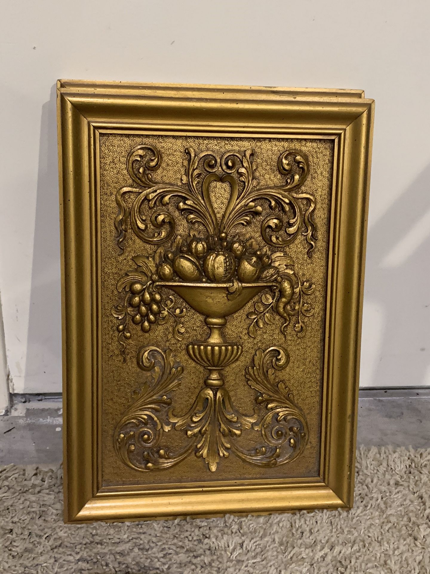 Gold Color Wall Plaque with Fruit Bowl Design - See measurements