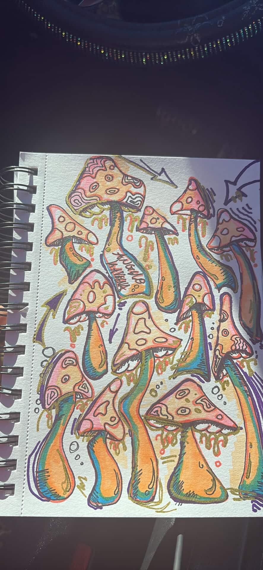 Drawing of cool trippy mushrooms I did (: can be used as a wall hanging or decor