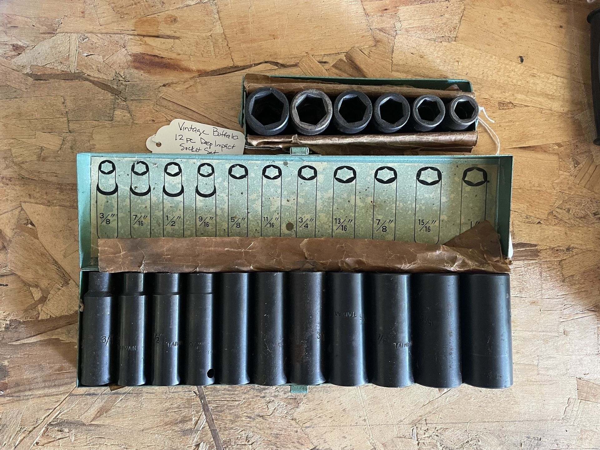 Vintage Buffalo 12 pc Deep Impact Socket Set & 6 pc. 1/2” Air Impact Sockets