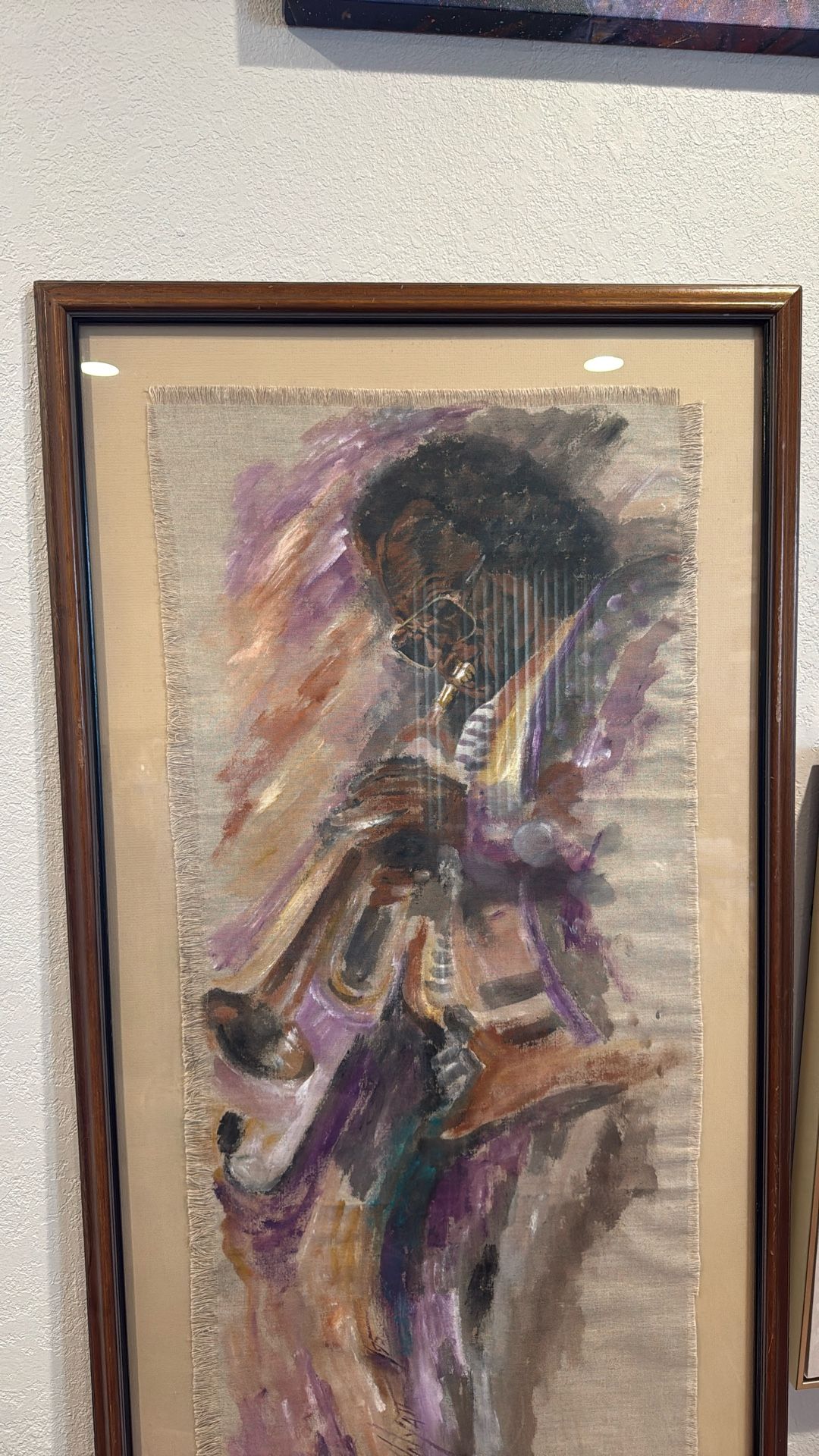 This is a stunning original oil on canvas painting by artist Karen Johnson Wyatt, dated 1995. The piece captures the soulful energy of a jazz musician playing the trumpet, with bold brushstrokes in purples, oranges, and earthy tones that give it a dynamic, expressive feel. Artist: Karen Johnson Wyatt Year: 1995 Medium: Oil on canvas Frame: Professionally framed under glass in a wooden frame Condition: Excellent vintage condition – canvas and colors are well preserved Size: Approx. [please measure height x width including frame] This is a statement piece that would look amazing in a music room, living room, or collection of jazz-inspired or African American art. ✨ Price: $650 (open to offers)