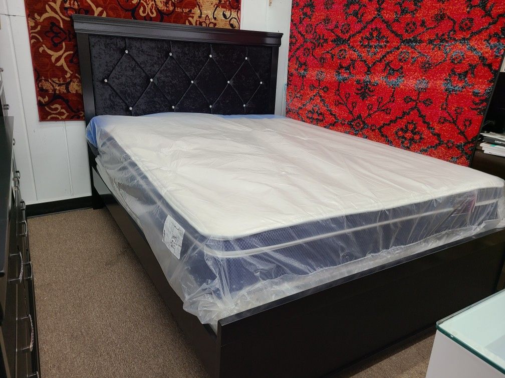 No Credit Needed Package Special Queen Size Black Color Bed Frame With Mattress And Box Spring