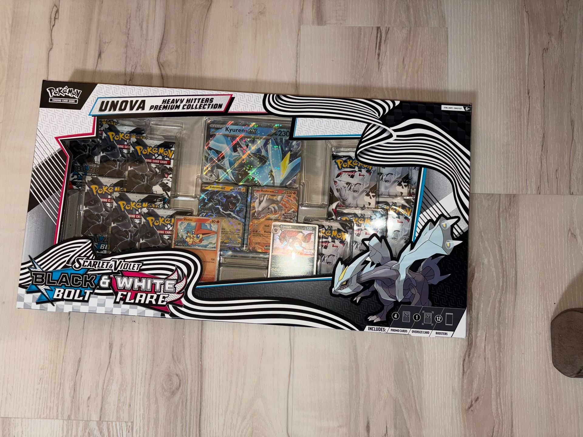 Unova Heavy Hitters Premium Collection 2 available 6 white flare packs 6 black bolt packs 4 stamped promos 1 jumbo stamped promo Destined rivals , 151,mega evolution ,phantasmal flames ,prismatic evolutions , journey together