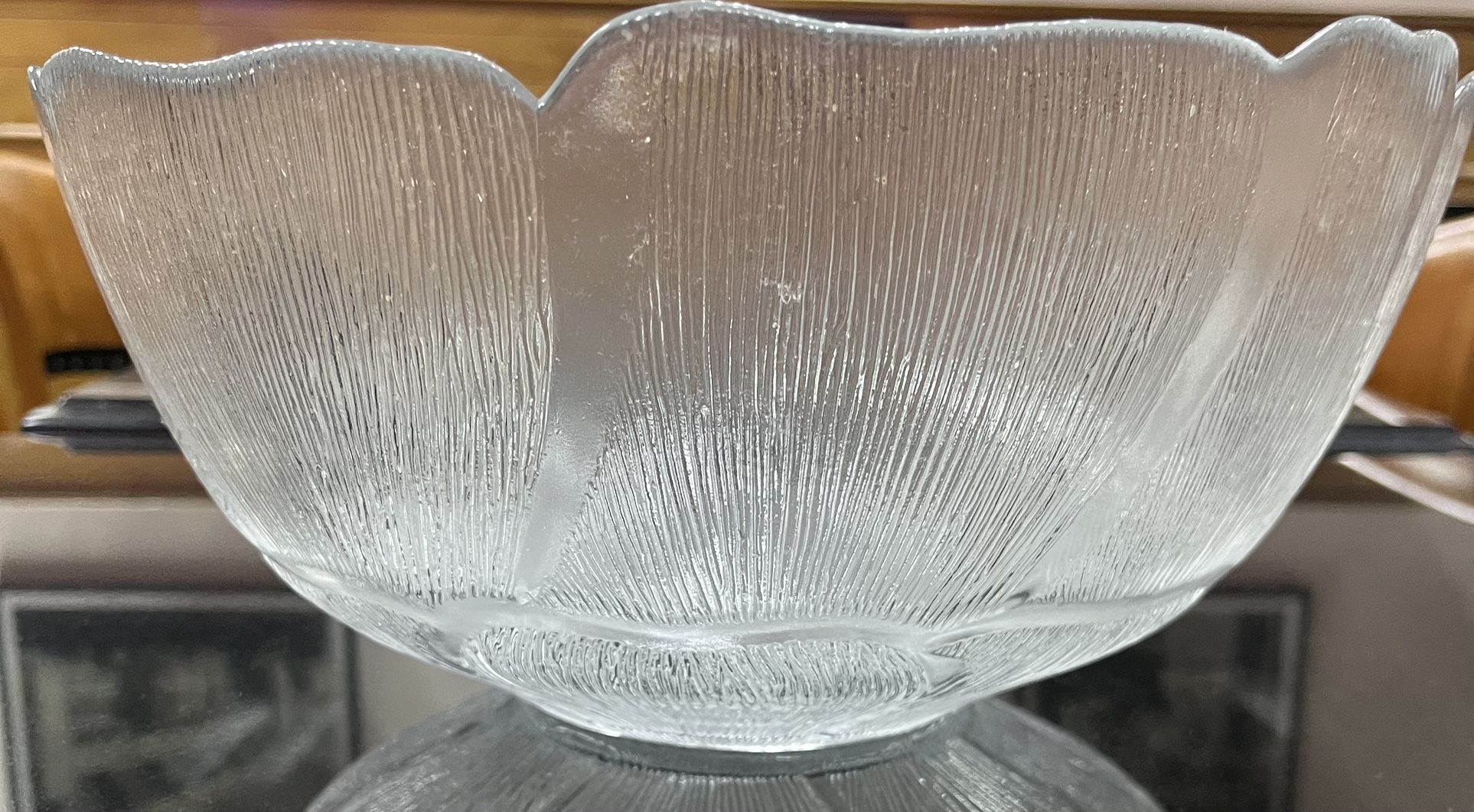 Glass bowl, clear glass. Only used a few times. No chips or cracks--in beautiful condition! Measures 12" in diameter and 6" high. I have 4 of these at $5 each. Will sell one at a time! Cash only.
