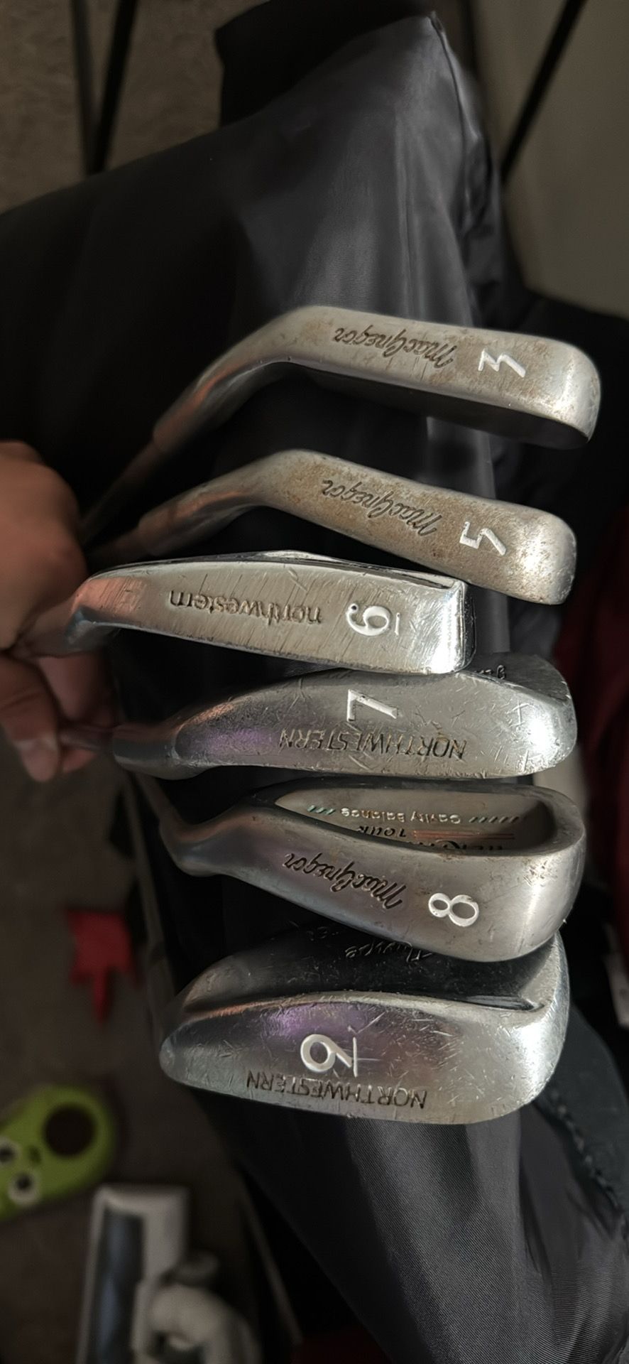 Selling these irons 3 5 6 7 8 9 they are mixed 3,5&8 are macgregor heritage tours 6 is a j c Snead northwestern and the 7 and 9 are Jim Thorpe pro master northwesterns