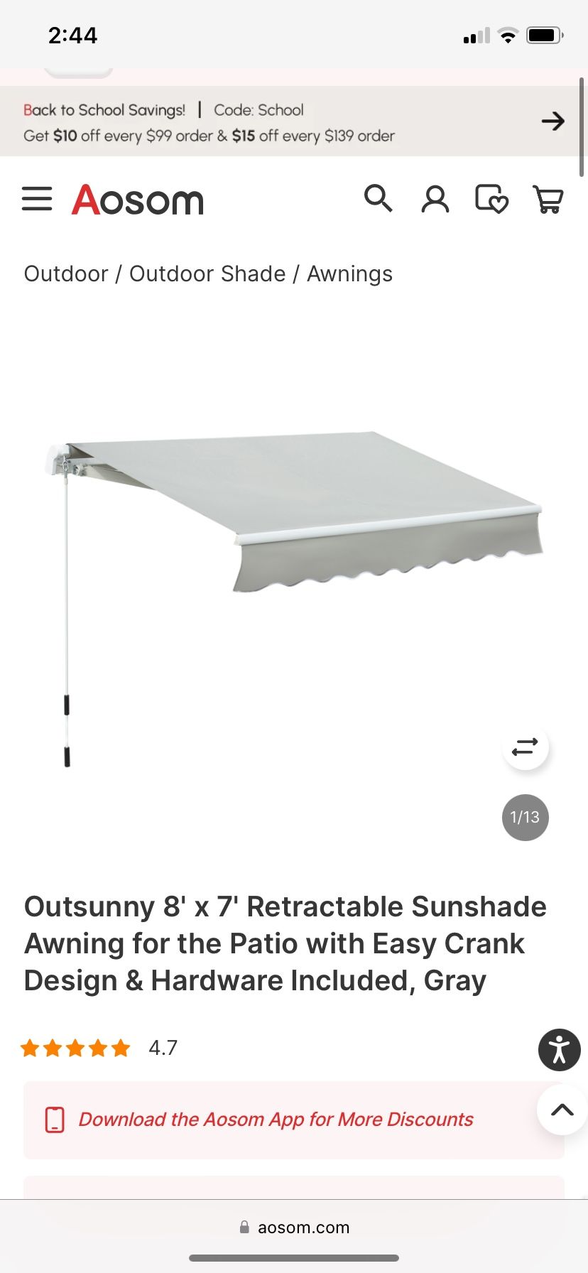 Here is the link to where I got the sunshade from: https://offerup.com/redirect/?o=aHR0cHM6Ly93d3cuYW9zb20uY29tL2l0ZW0vb3V0c3VubnktOC14LTctb3V0ZG9vci1wYXRpby1tYW51YWwtcmV0cmFjdGFibGUtcGF0aW8tYXduaW5nLXdpbmRvdy1zdW5zaGFkZS1zaGVsdGVyLTg0MC0xOTNneX44NDAtMTkzR1kuaHRtbD9zcnNsdGlkPUFmbUJPb3A0eFkyOG81OUxOaEJieGRDYkJRd0xnX3J3NU9UakM5czBUV1JBa1VjVXh1RlcwNDhF I originally got it for the front of my house but i ended up not using it, still in the box as it came in. Brand new, never used. Asking $120. Located in Antioch, let me know if you have any questions!