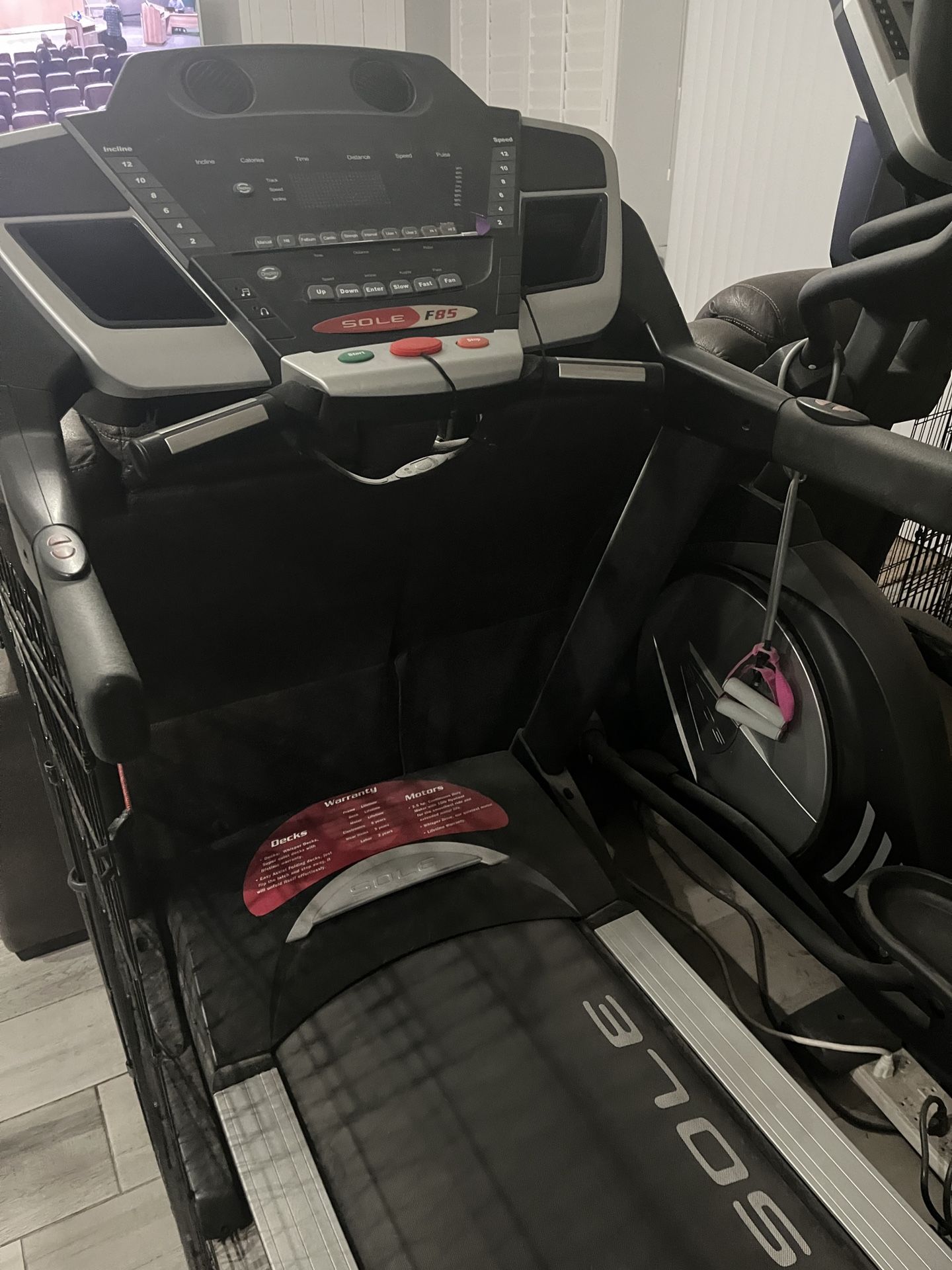 Incline adjustment, Bottle holder, Safety key, Speedometer, Calorie monitor, Foldaway & Compact treadmills, Electrically powered