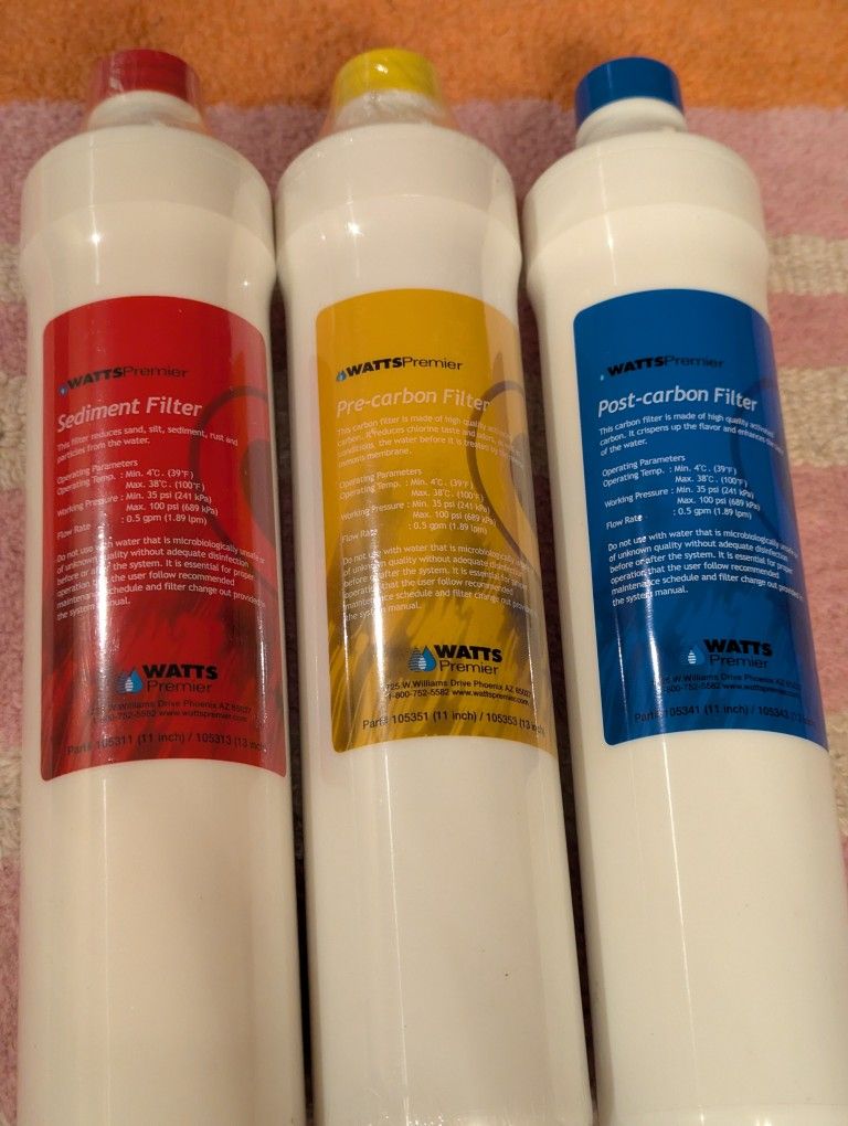 RO Pure Filter Kit for WATTS Premier including Sediment filter, Pre-carbon filter, and Post-carbon filter