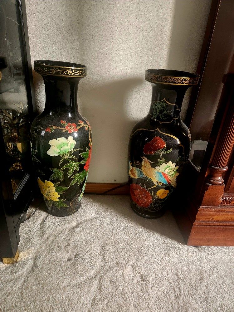 2 Vintage Black Vase with Peacock Size height 24 inches