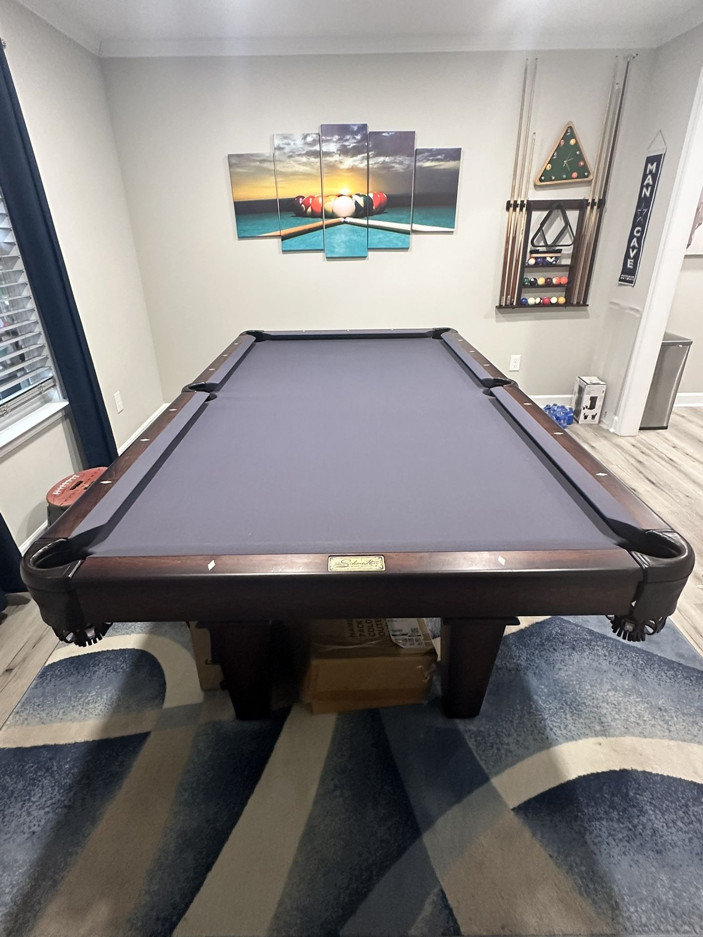 This Pool Table has been gently use, still like new. Just don’t have the space to play on it.Its manufactured by : A E Schmidt cc , it an 8 foot tall, very nice . I have two tall billiard chairs to go with, this would be great for that Man Cave, all accessories are included. Please see Photos