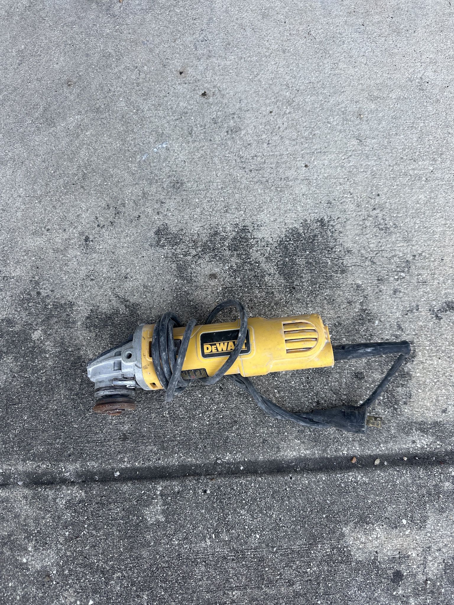 DeWalt DWE402 4.5” angle grinder. Runs strong and smooth. Tested and ready to use. Good for tile, metal, and concrete work. Pickup in Beverly Hills.