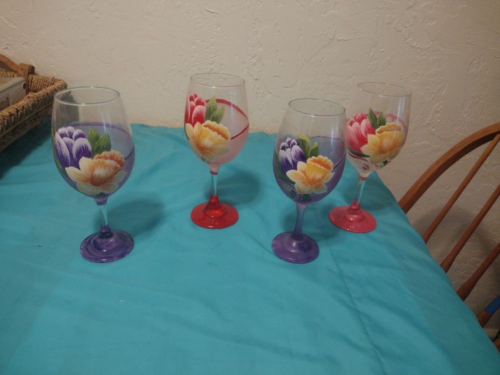 Flower Designed Wine Glasses
