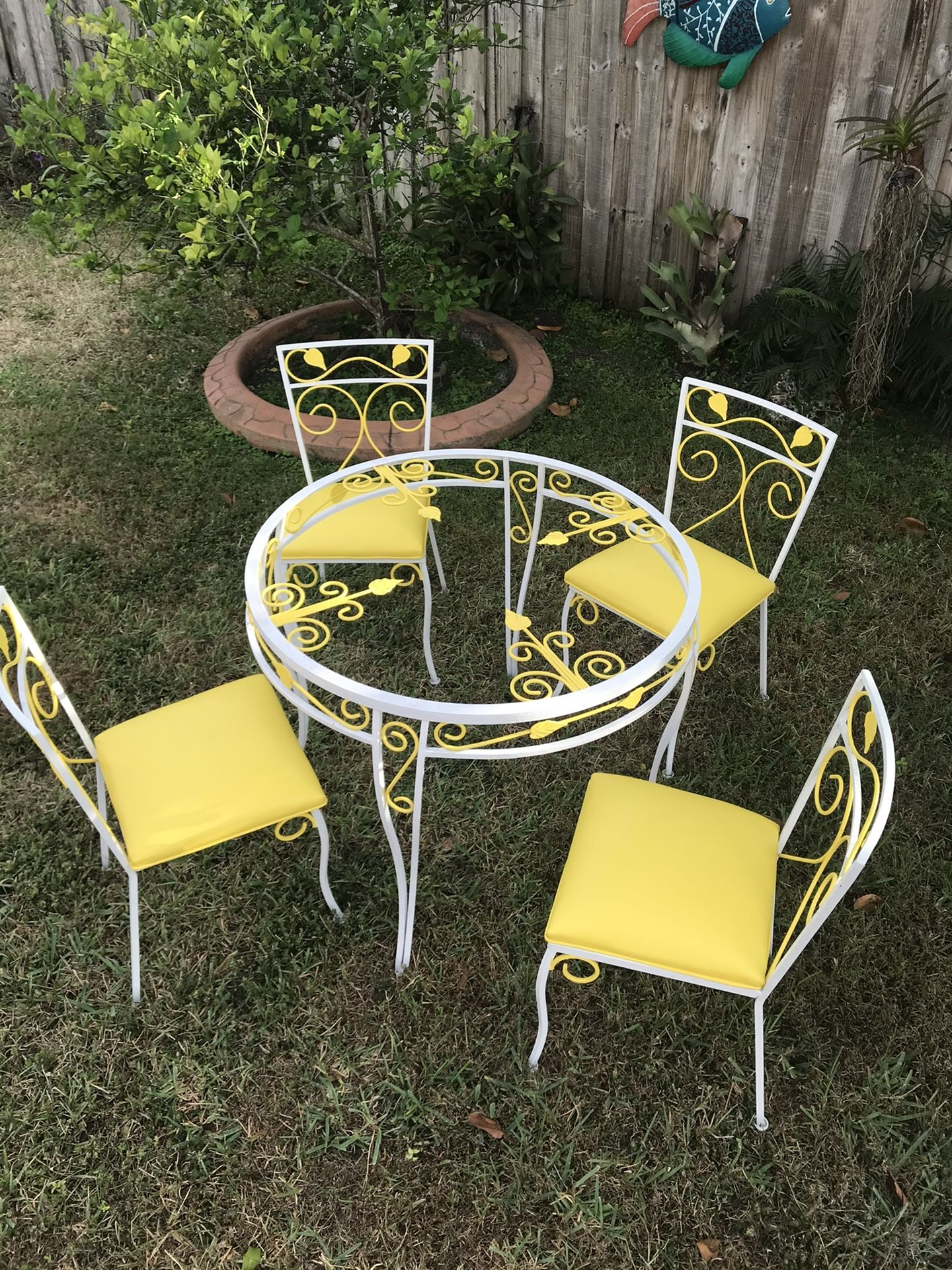 Nice Unique Yellow Dinning Table With 4 Chairs And Glass