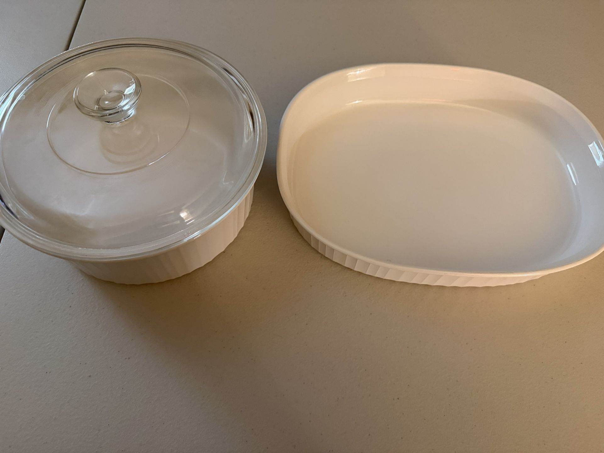 3pc. French White Corning Ware Baking Set, Oval, Round W Lid.