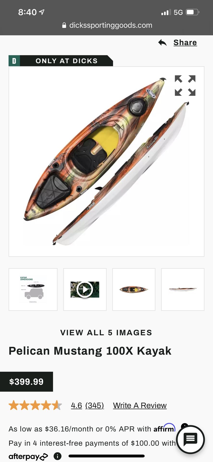 New kayak 10’ Pelican Fishing Kayak Made for fishing and easy to paddle, the Pelican® Mustang 100X Kayak offers comfort, stability and awesome performance all in one boat. The Mustang includes fishing rod holders, plenty of storage, and also a removable storage container. This kayak boasts a rigid construction that’s built tough. FEATURES: 1-person sit-in kayak Made for fishing Easy to paddle; great stability and easy traction Two flush mount rod holders Twin-arched multi-chine hull Constructed with RAM-X™ impact resistant materials Multi-layer polyethylene, with advanced resin, construction RAM-X™ polyethylene boasts a more durable, rigid construction ErgoForm™ seat system for all-day comfort Molded footrests plus kneepads for comfort Ergonomic carry handles for easy transport to and from the shore Ample storage for fishing gear Front deck storage hatch with bungee cord Tank well with bungee cord to secure items Removable, EXOPOD 17L hard shell storage compartment Dual position bottle holder Smartphone holder at the cockpit Paddle not included