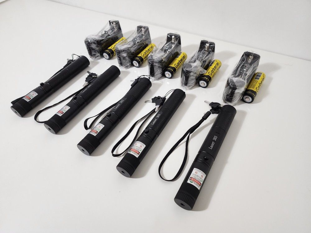 5pcs 301 532nm Green Laser Pointer Pen High Power GlareOutdoor Flashlight Professional Travel Indicator HuntingLaser Device 5pcs for $140 Item description Specifications Wavelength: 532nm. Beam style:continuous line. Spot size:6M place <10mm. Working voltage:DC=3.0-3.7V. Preheat time: < 3seconds. Working temperature: +15°C~+35°C. Storage temperature: -10°C~+40°C Package Includes 5* Green Laser 5* Rechargeable Battery 5* Smart Charger