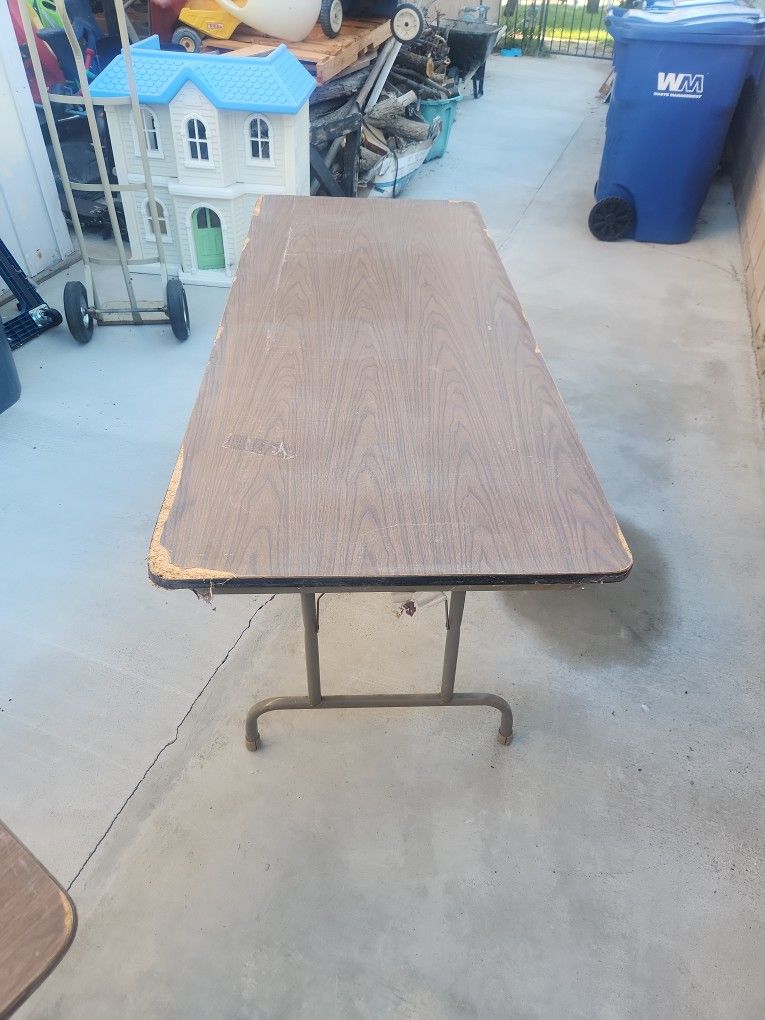 Two compressed wood tables still sturdy a little damaged. Still useful not broken.