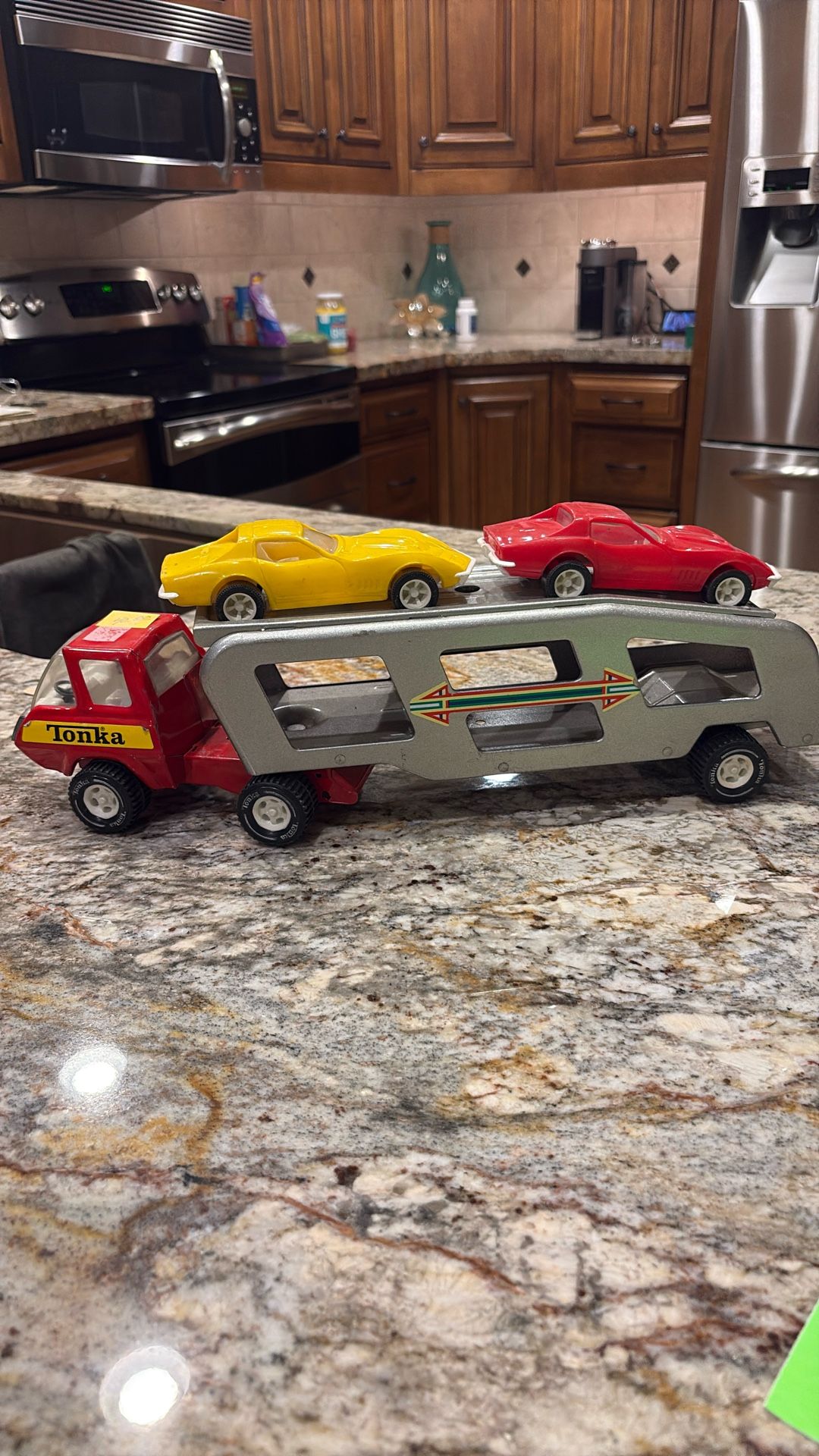 Car carrier & Tonka truck. Warner & Alma school Rds