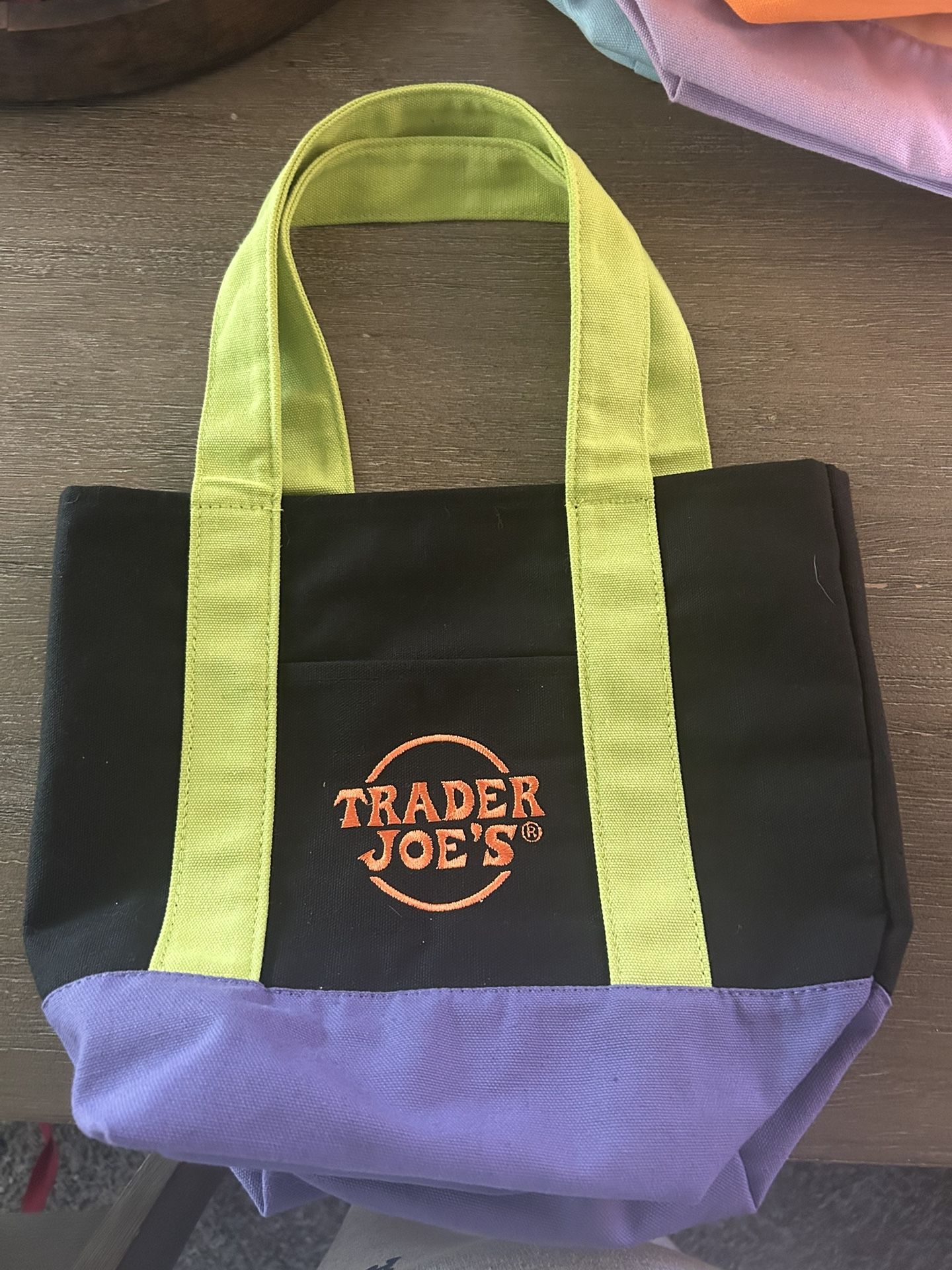 4 mini totes, lavender, light blue, Orange and multi-colored
