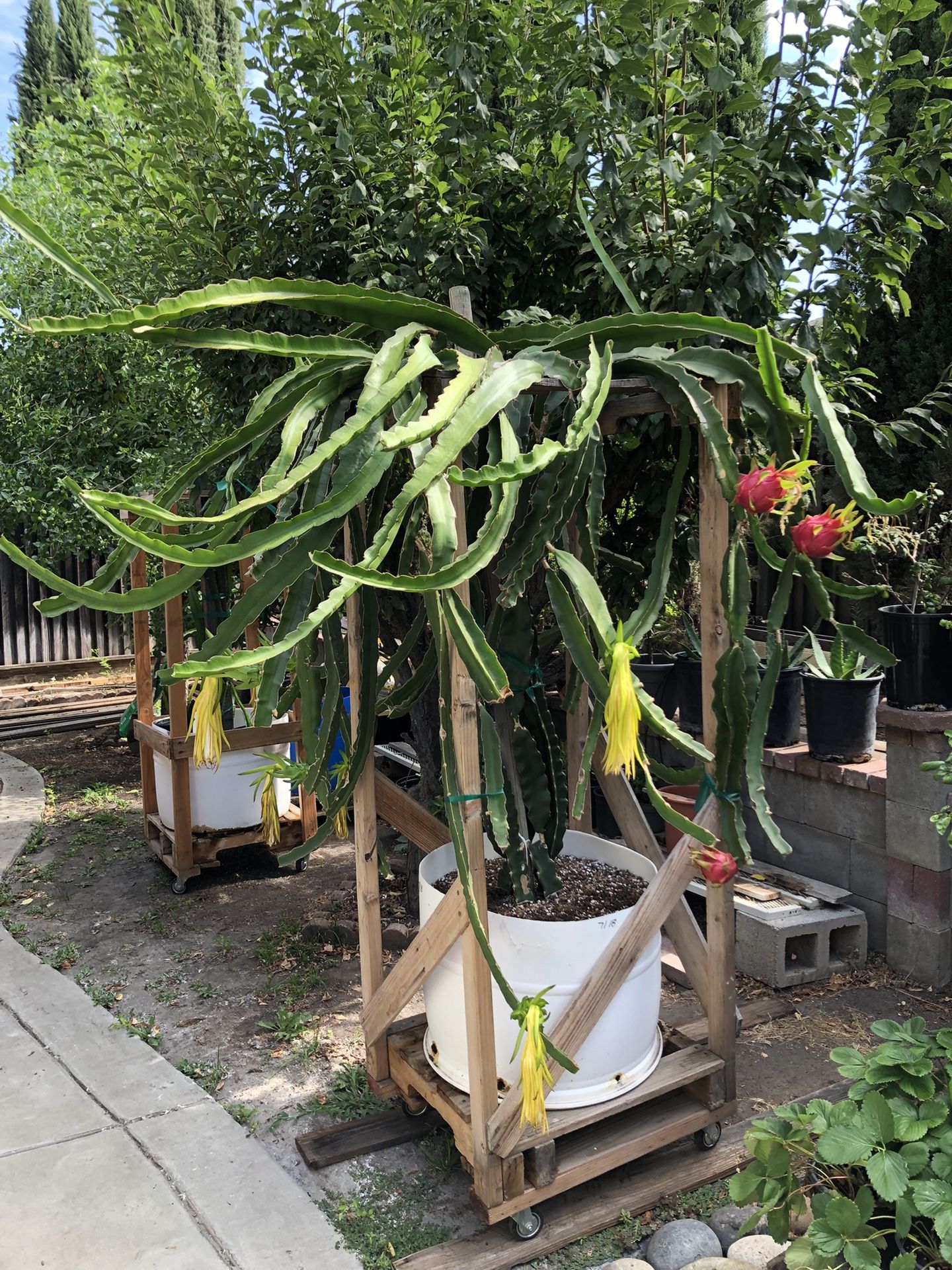 White and Red dragon fruit plants Planted in a half 55 gallon drum Green and healthy Organic Fruits are starting to show up Have red and white to chose from Comes with the rolling cart Very heavy to lift Recommendation to hull home: -Uhaul with a tall 67”+ height with ramp, tie downs -truck with a helper, tie downs, tarp -trailer with tie downs, tarp Pick up only No delivery Available Sundays only