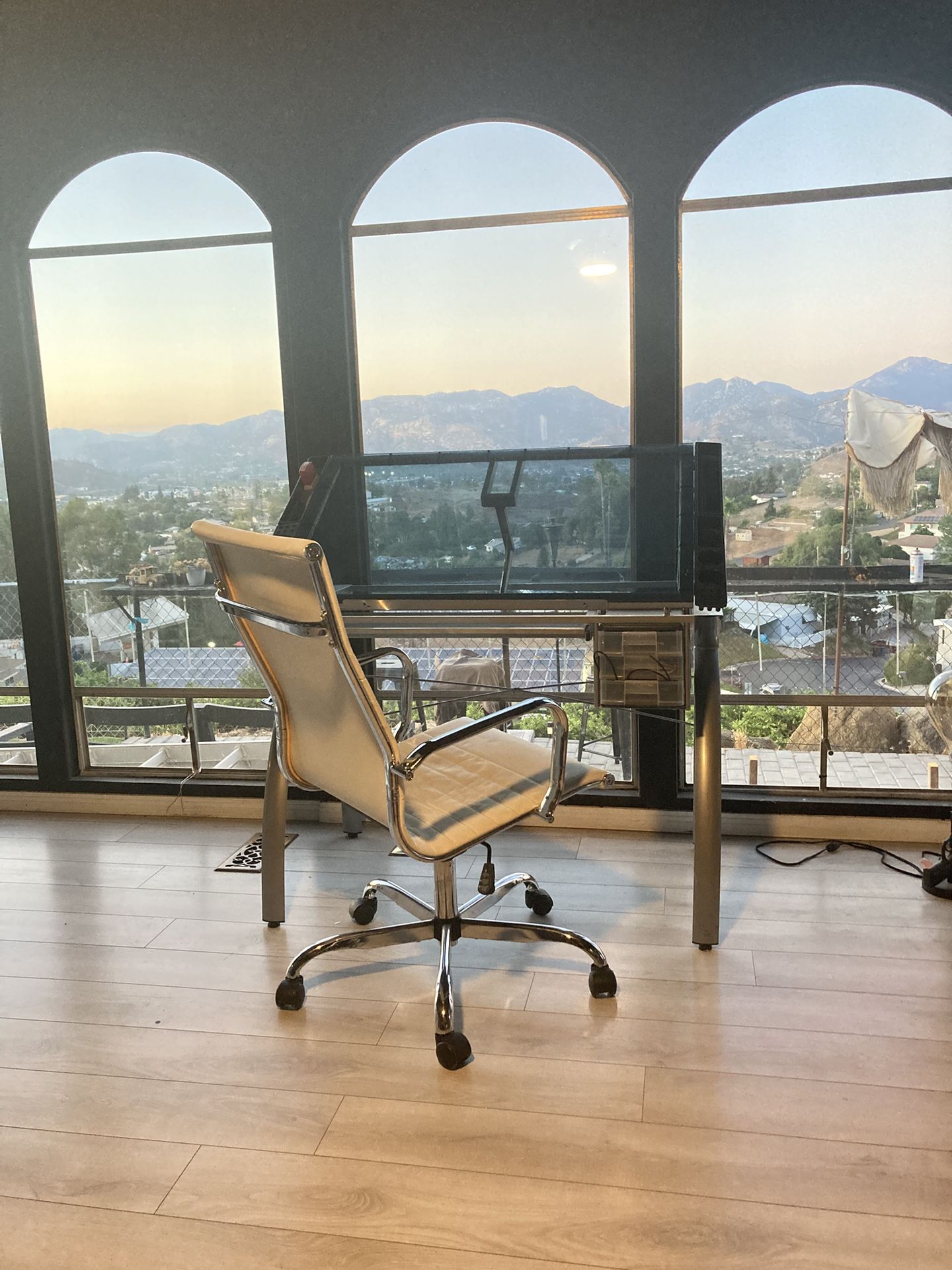 Chair was sold- chair not included Desk was also about $200. Thick glass top. I bought it for my husband but he doesn’t use it. Just want these out of my living room. OPEN TO OFFERS PICK UP ONLY - NO I DO NOT HAVE A TRUCK , I DO NOT DELIVER. CASH ONLY NO APPS.