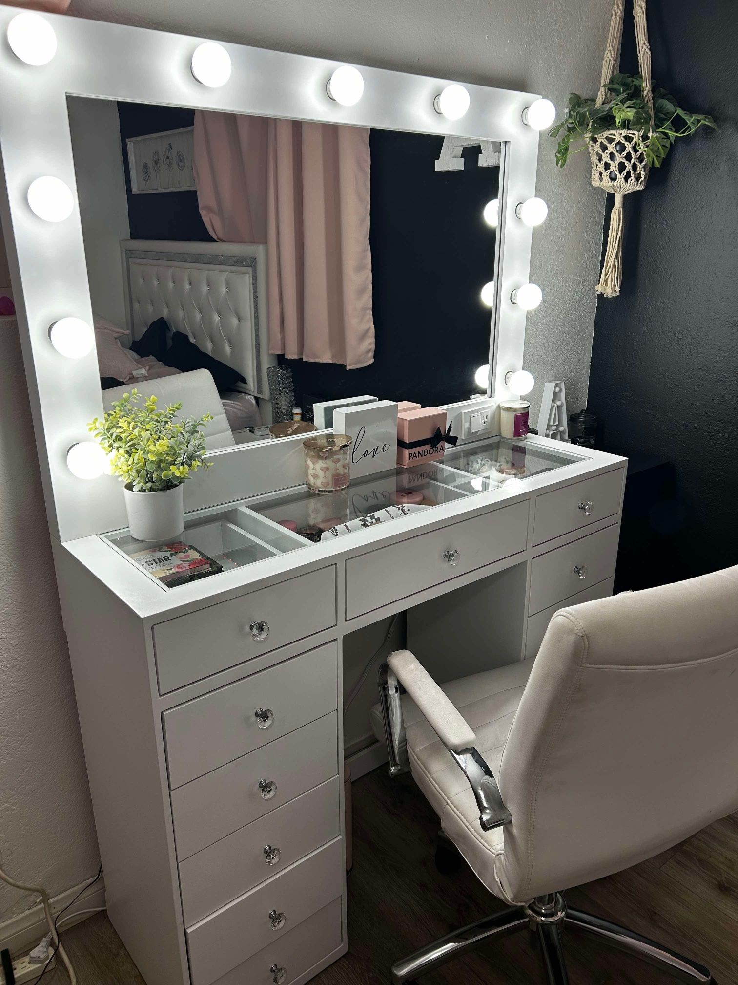 NEW Makeup desk includes desk with crystal knobs and a Hollywood mirror Measurements 48"L x 68"H x 16"D Delivery available for a small fee π Pickup location: Riverside,CA π
