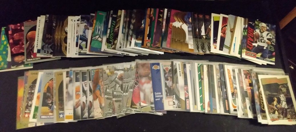 Some doubles of stars inserts and rc that Im getting rid of. Brady, magic, pippen, p manning and a Rodgers included in lot. Beckett value worth of $500+.