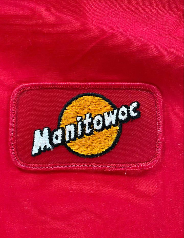 Vintage Louisville Kentucky Bred Sportswear Red Trucker Work Jacket Manitowoc Very cool vintage work jacket! Based off the style and tag, I’d guess late 60’s to 70’s. Bright red with Manitowoc patch. Pockets in front, zips up, and buttons at cuffs. Cotton. I see some very faint stains on bottom of arms area-see last two pics. Overall excellent vintage condition! Size Large. Please refer to pics for details and measurements. Item comes from smoke free and pet free home