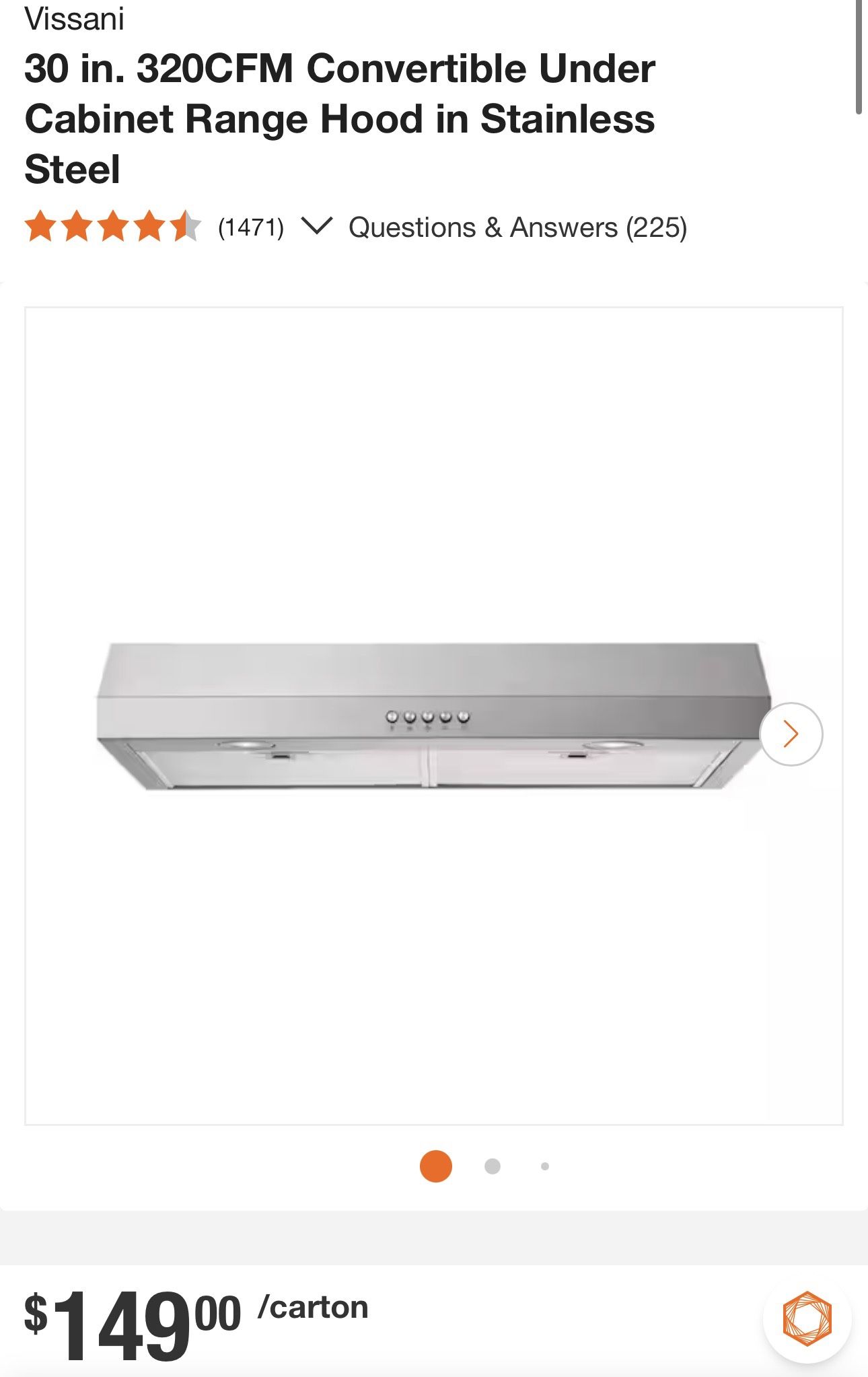 30 in. 320CFM Convertible Under Cabinet Range Hood in Stainless Steel