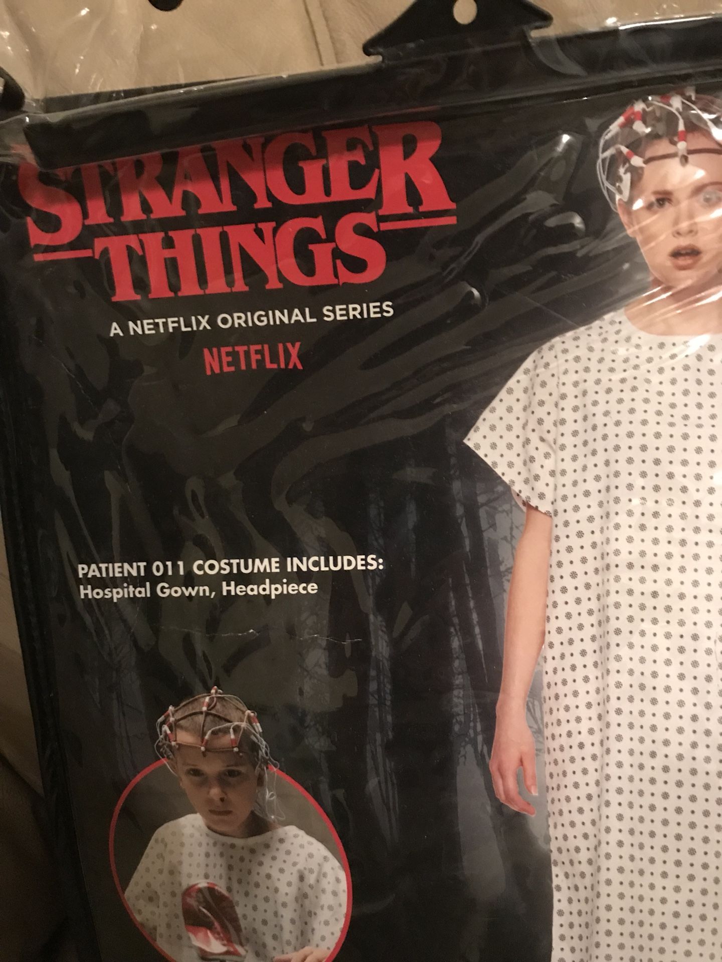 Adult size small Eleven Costume. We paid $40 for it. Only used once. All you need are some socks and some fake blood for your nose and you’re out the door