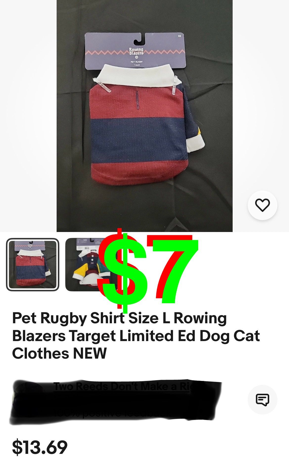 Rowing Blazers Pet Rugby Shirt Size L Limited Ed Dog Cat Clothes NEW (Large)
